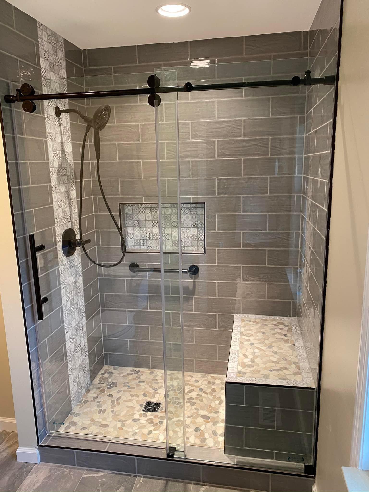 Projects Our Projects Inspiration for Your Next Project Walk in shower Custom shower Bath remodel Kitchen Remodel Residential Custom fireplace Residential Modern Style Pattern Residential